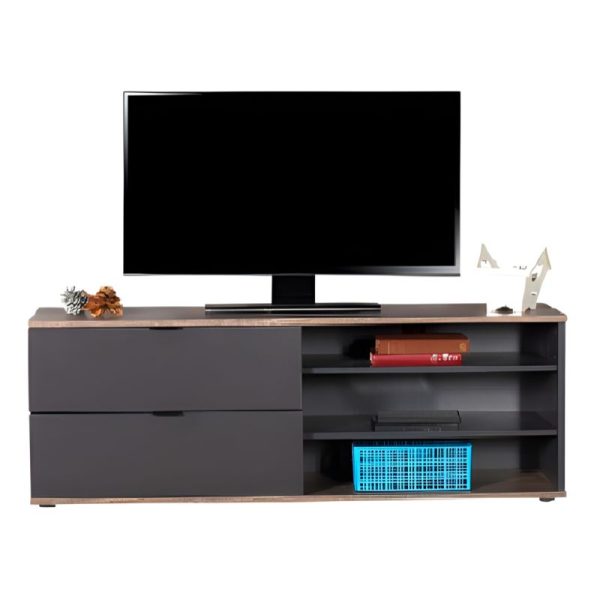 ΕΠΙΠΛΟ TV ΔΙΧΡΩΜΟ ΜΕ ΔΥΟ ΣΥΡΤΑΡΙΑ ΚΑΙ ΤΡΙΑ ΡΑΦΙΑ 120x35x48 εκ LATTE/ANTHRACITE