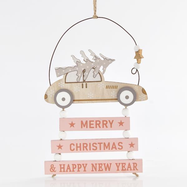 ΣΤΟΛΙΔΙ ΞΥΛΙΝΟ ΚΡΕΜΑΣΤΟ ΜΕ ΑΥΤΟΚΙΝΗΤΟ ΚΑΙ ΡΟΖ ΕΠΙΓΡΑΦΗ, 22cm